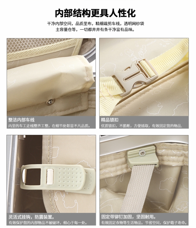- 规 格:20寸57*34*23CM/24寸65*40*28CM/26寸75*52*31.5CM