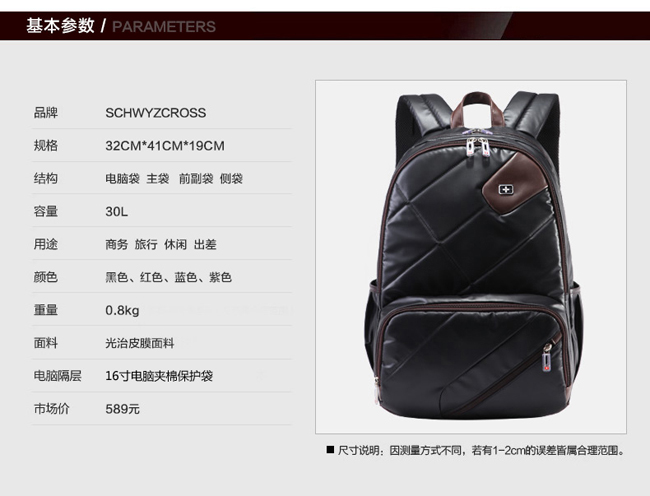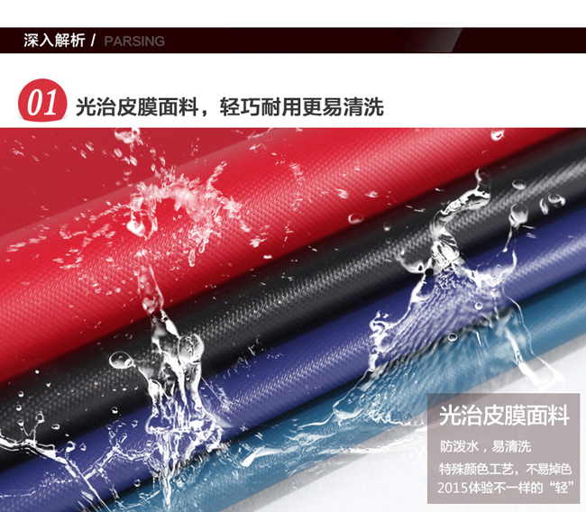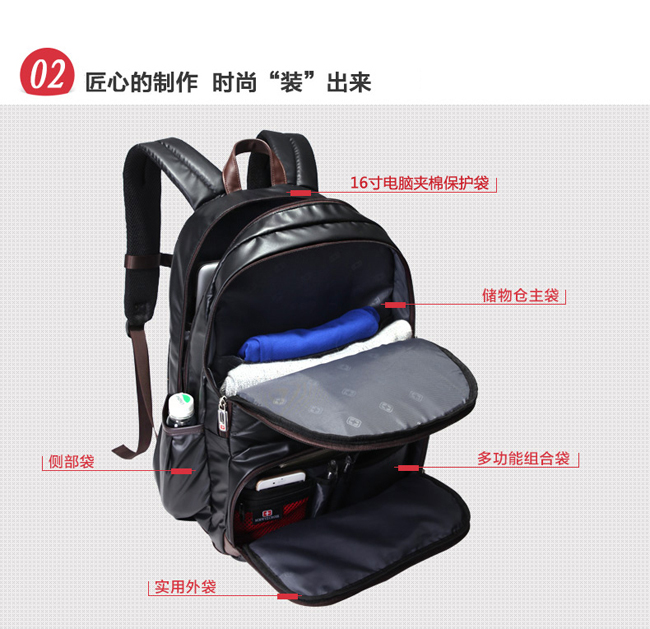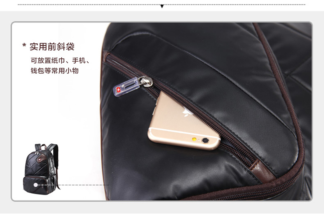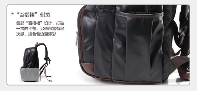 内部结构: 网袋 拉链暗袋 手机袋 证件袋 夹层拉链袋 电脑插袋 相机插袋