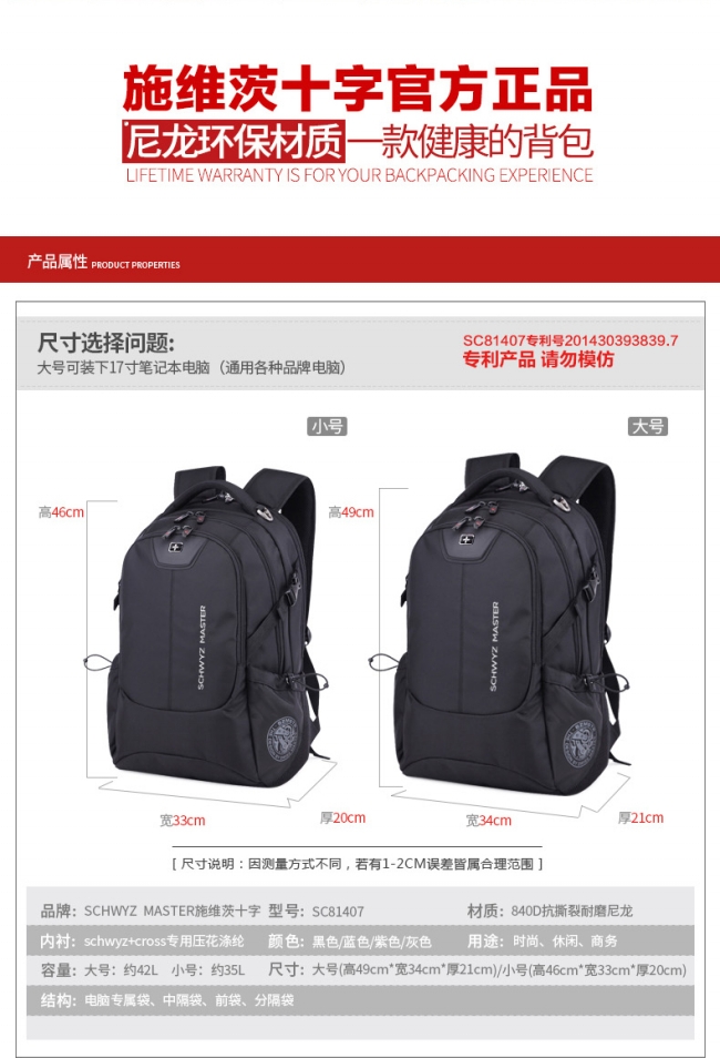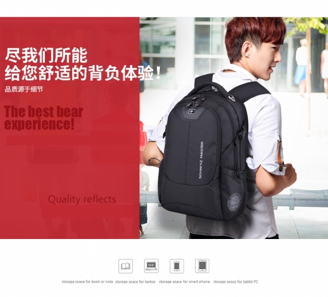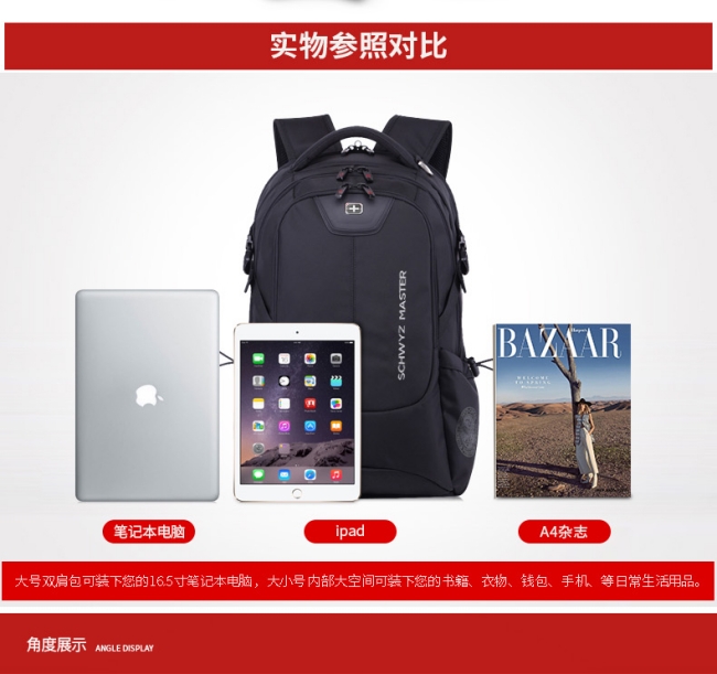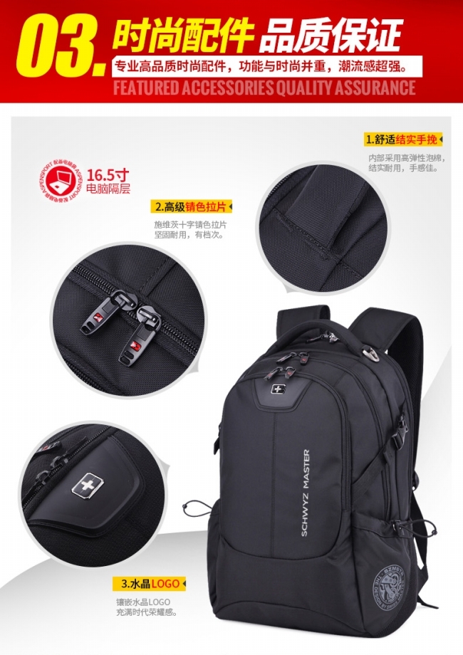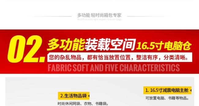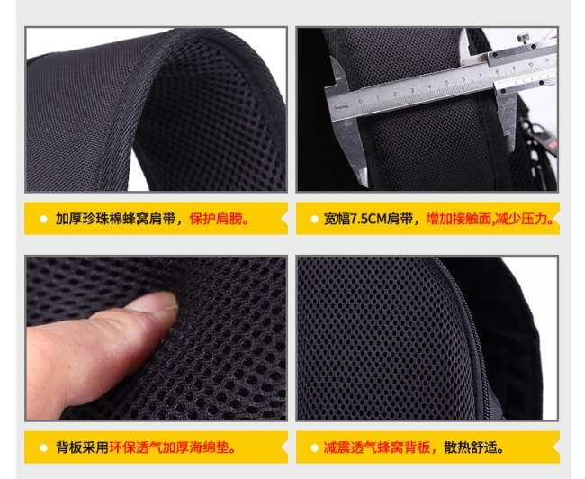 内部结构: 网袋 拉链暗袋 手机袋 证件袋 夹层拉链袋 电脑插袋 相机插袋
