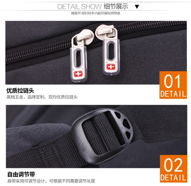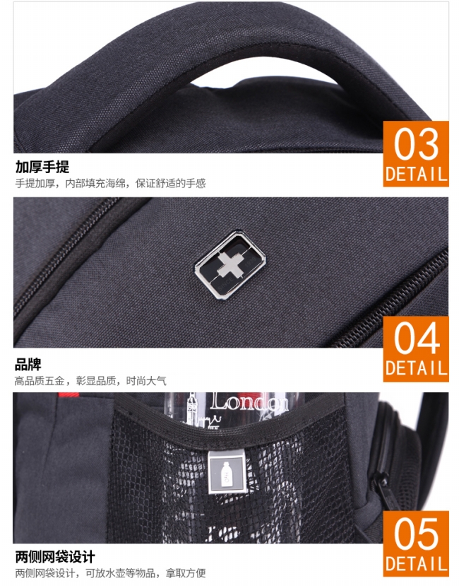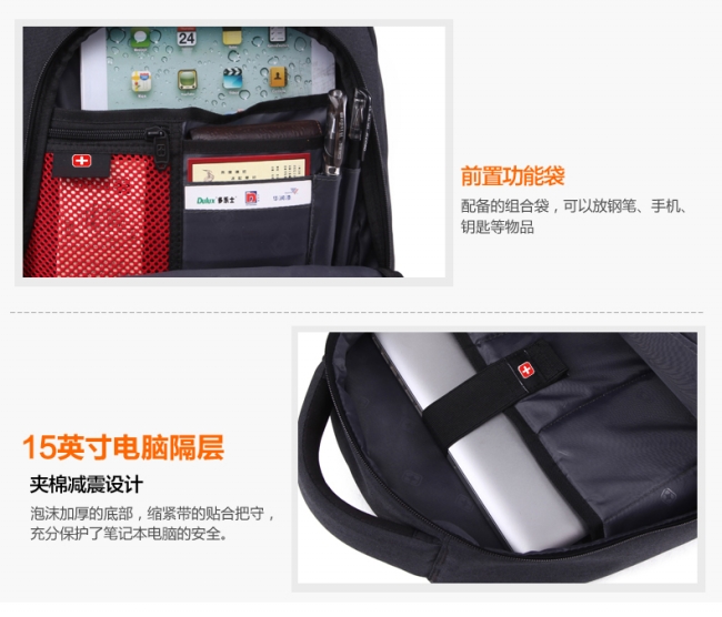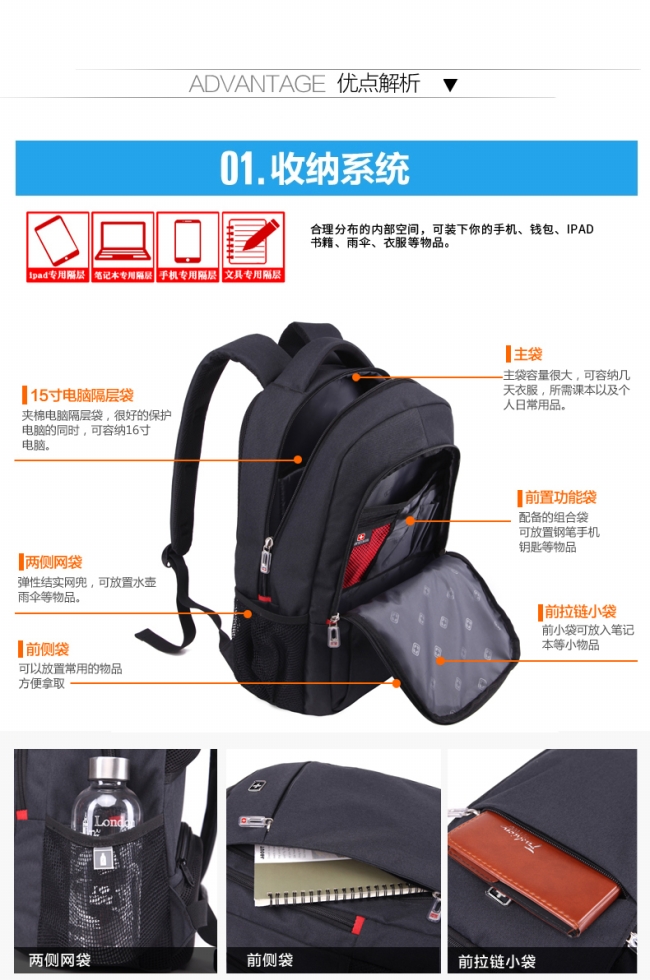 内部结构: 拉链暗袋 手机袋 证件袋 夹层拉链袋 电脑插袋 相机插袋