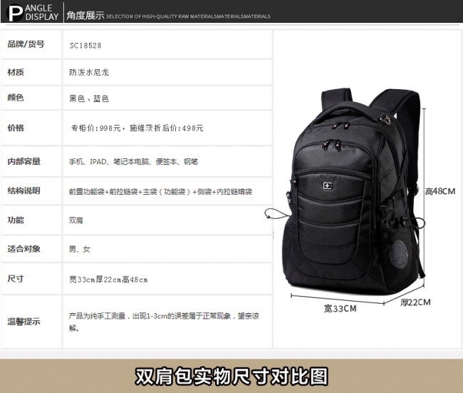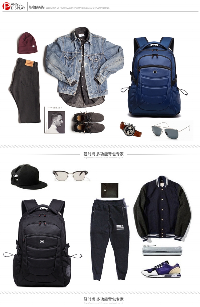 内部结构: 网袋 拉链暗袋 手机袋 证件袋 夹层拉链袋 电脑插袋 相机插袋