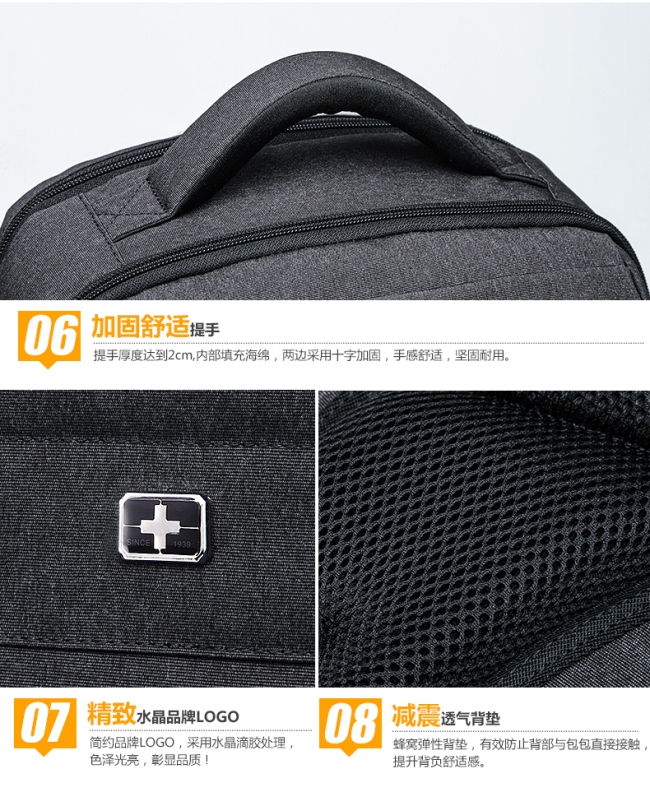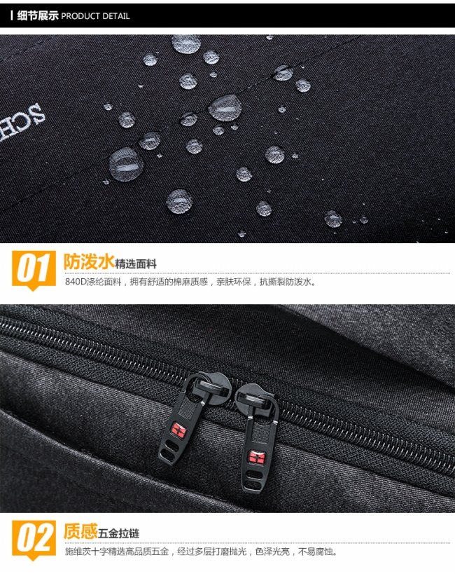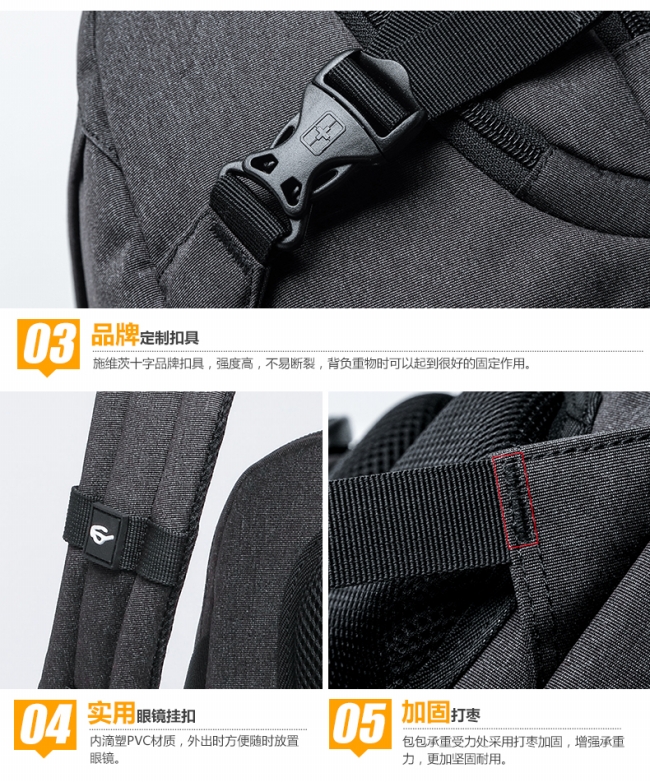 内部结构: 网袋 拉链暗袋 手机袋 证件袋 夹层拉链袋 电脑插袋 相机插袋