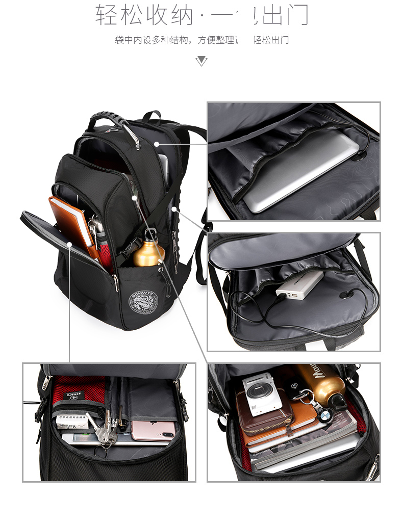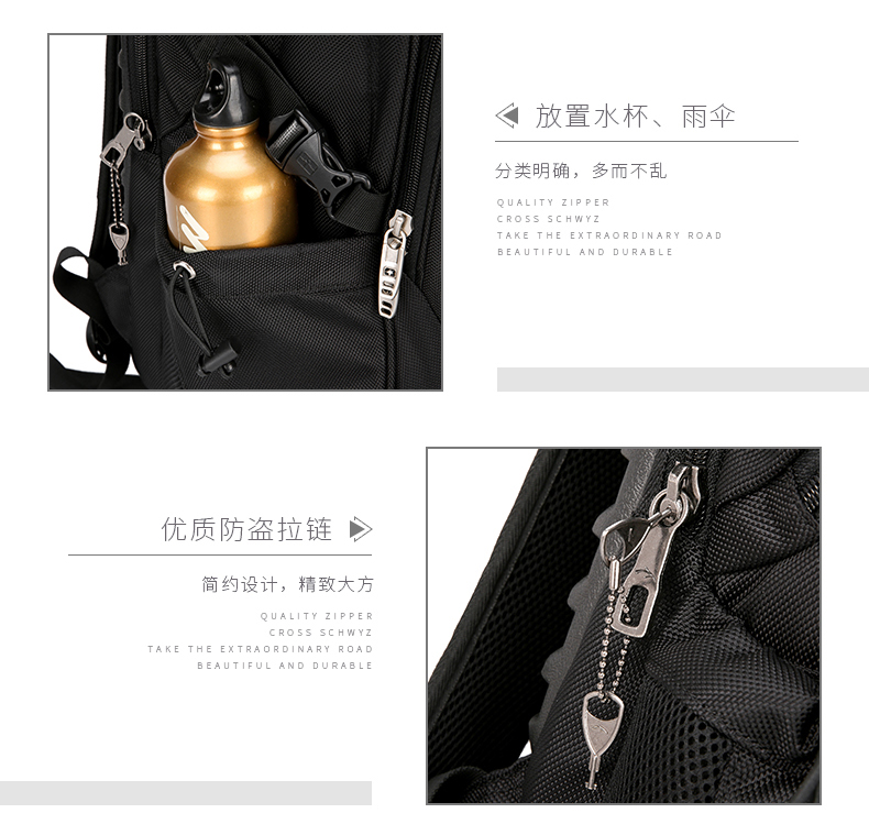内部结构: 网袋 拉链暗袋 手机袋 证件袋 夹层拉链袋 电脑插袋