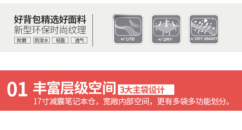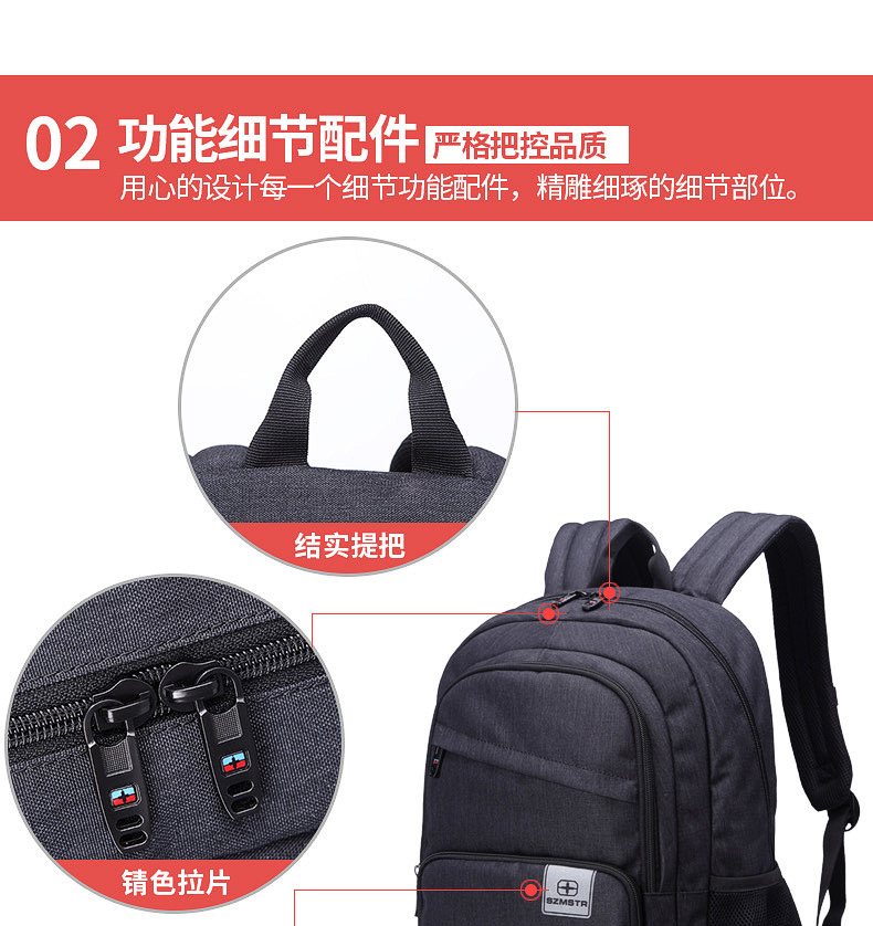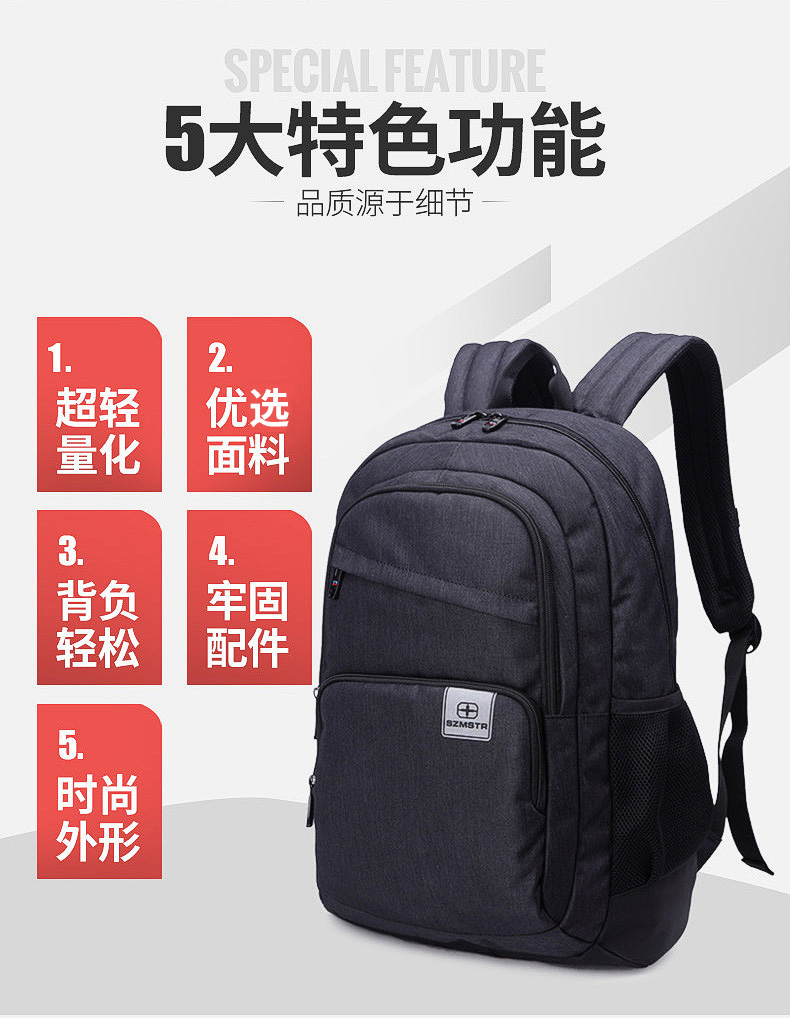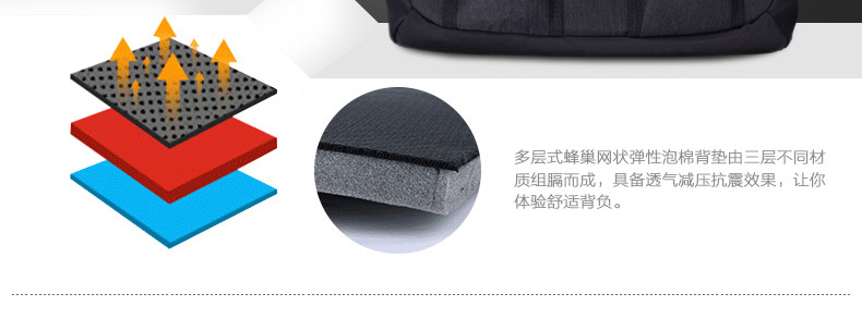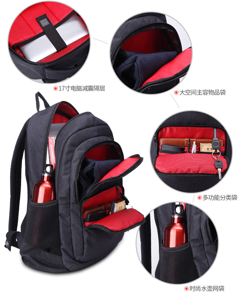 内部结构: 网袋 拉链暗袋 手机袋 证件袋 夹层拉链袋 电脑插袋 相机插袋