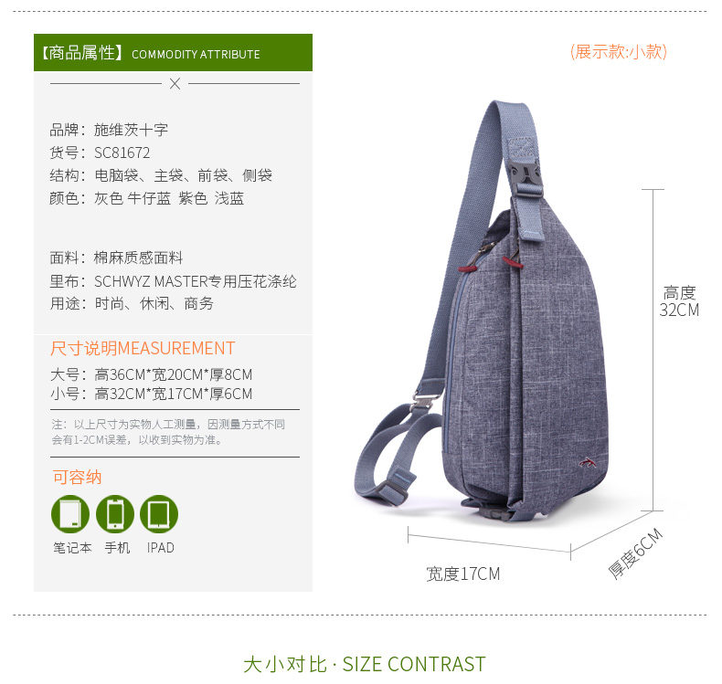 颜色分类: 灰色大号 浅蓝大号 牛仔蓝大号 紫色大号 灰色小号 浅蓝小号 牛仔蓝小号 紫色小号