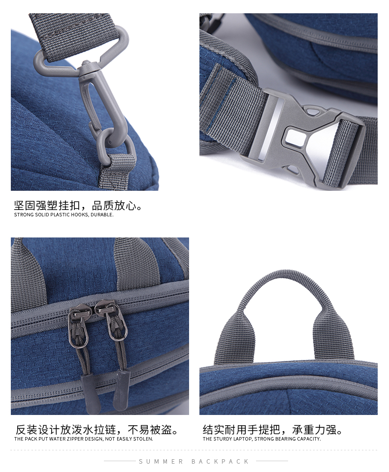 内部结构: 拉链暗袋 手机袋 证件袋 夹层拉链袋 电脑插袋
