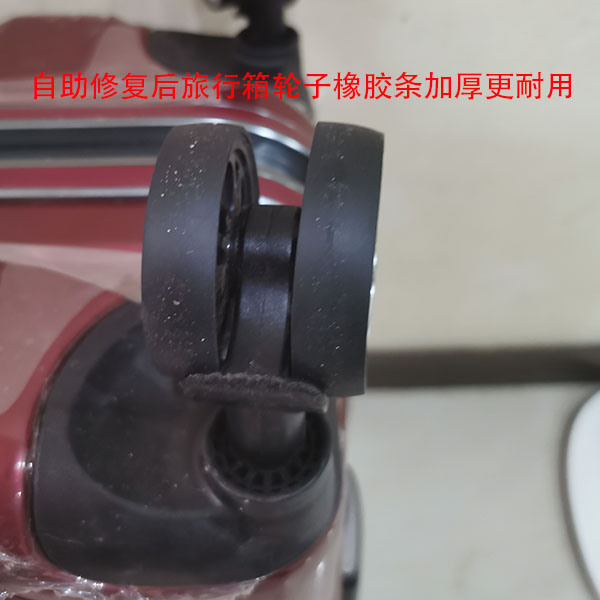 旅行箱使用时间长,轮子的磨损就比较厉害,拆除轮子也比较复杂。如果旅行箱轮子只是磨损而没有其它顺坏,可以自行使用轮子橡胶条自助维修,以延长轮子和旅行箱的使用寿命。
