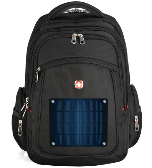 为了避免一人外出旅游时遇到电子设备没电的情况发生,瑞士军刀国际集团的设计师们设计了一款SABER军刀太阳能超级背包,通过其内置的4000毫安太阳能充电器,它可以随时对你的手机或平板电脑等电子设备进行充电。此款背包直接将获取的电源储存在其顶端的太阳能电池板内,然后为任何与其连接的设备提供电源。