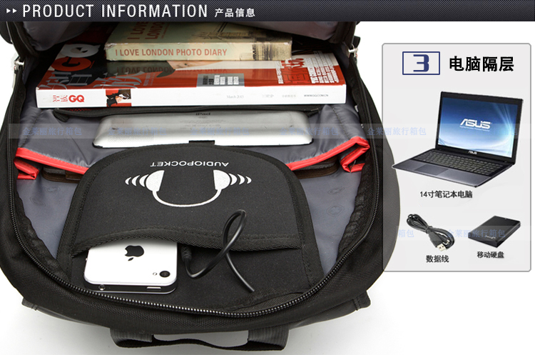 内部结构: 手机袋 证件袋 电脑插袋