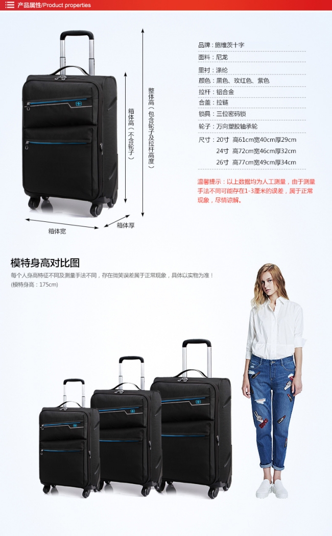 • 规 格:20寸61*40*29CM/24寸72*46*32CM/26寸77*49*34CM