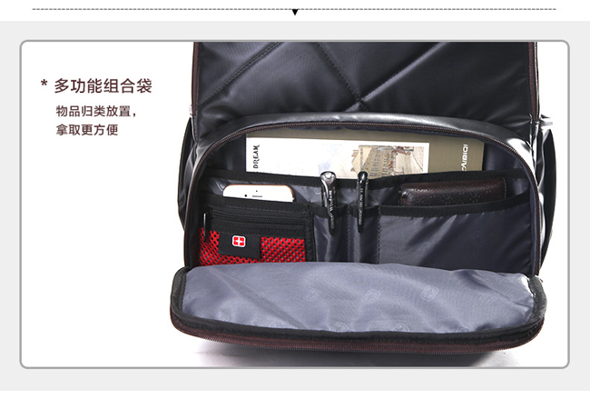 内部结构: 网袋 拉链暗袋 手机袋 证件袋 夹层拉链袋 电脑插袋 相机插袋