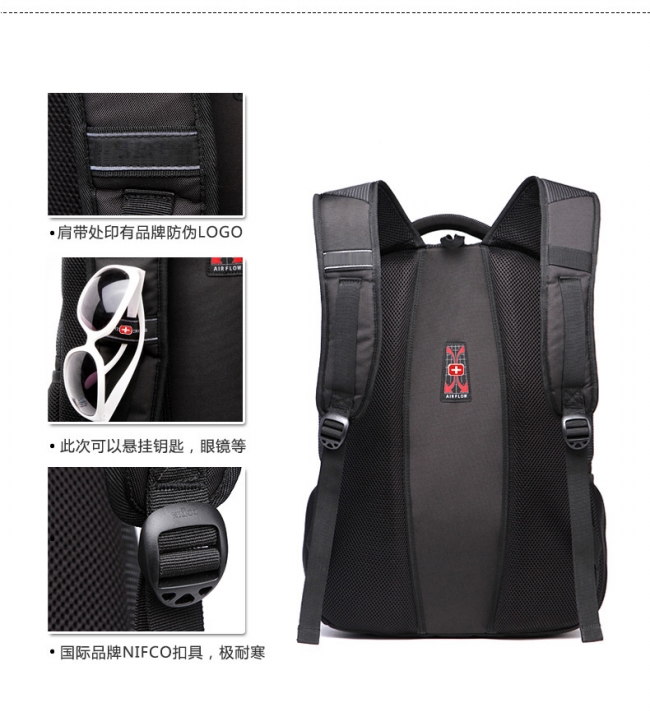 内部结构: 网袋 拉链暗袋 手机袋 证件袋 夹层拉链袋 电脑插袋 相机插袋