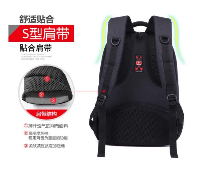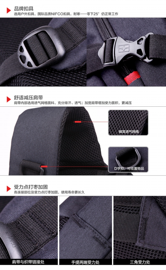 内部结构: 网袋 拉链暗袋 手机袋 证件袋 夹层拉链袋 电脑插袋 相机插袋