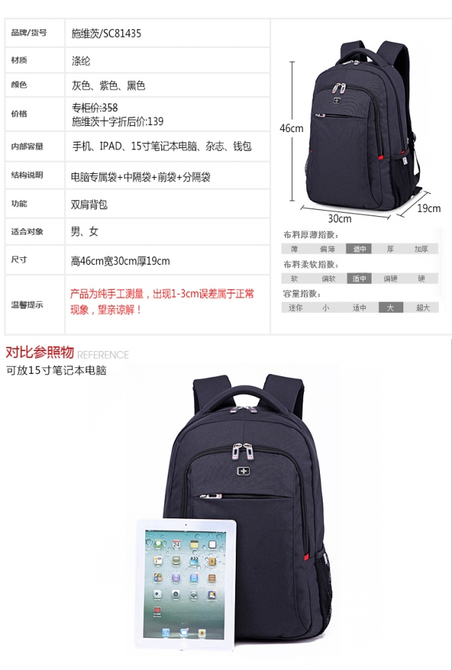 箱包尺寸: 30cm*46cm*19