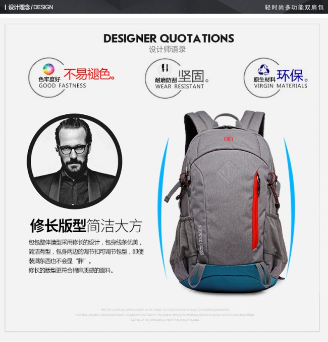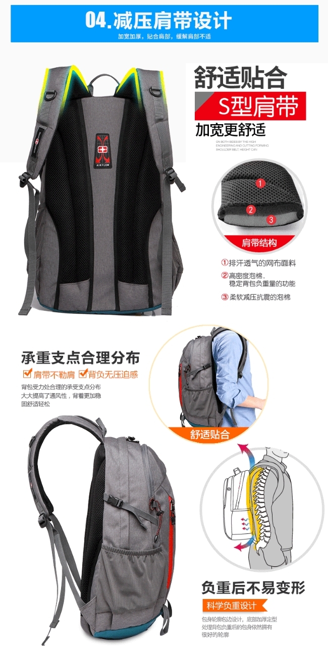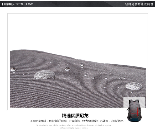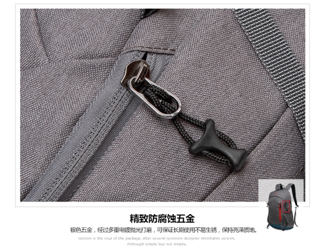 内部结构: 网袋 拉链暗袋 手机袋 证件袋 夹层拉链袋 电脑插袋 相机插袋