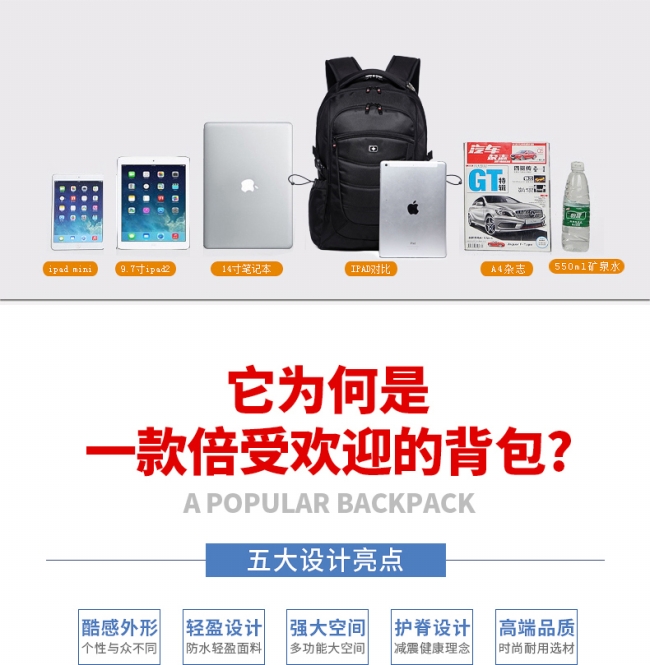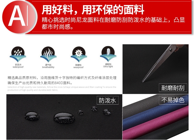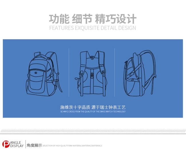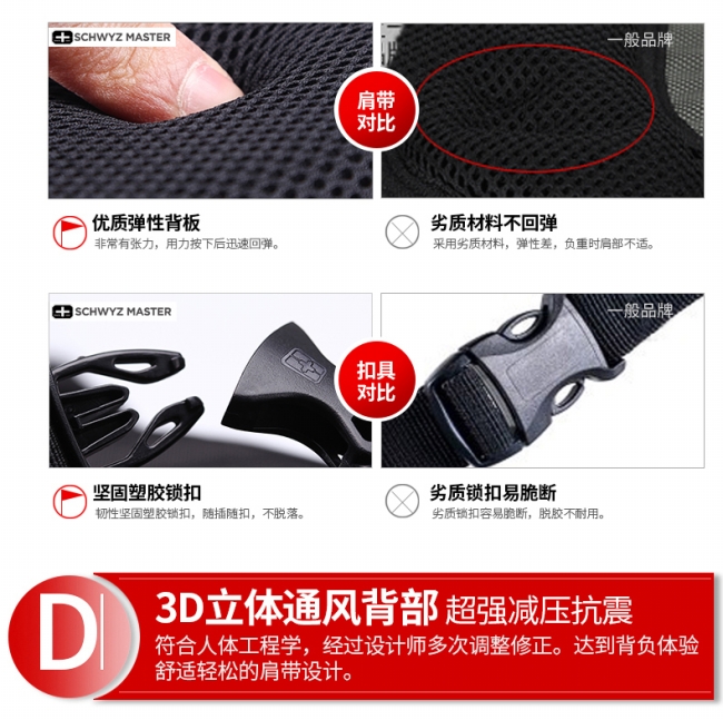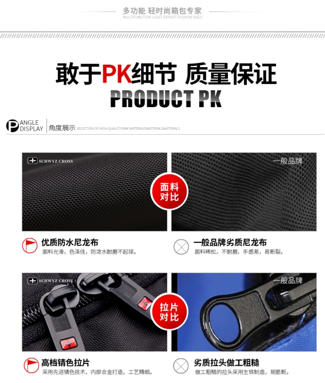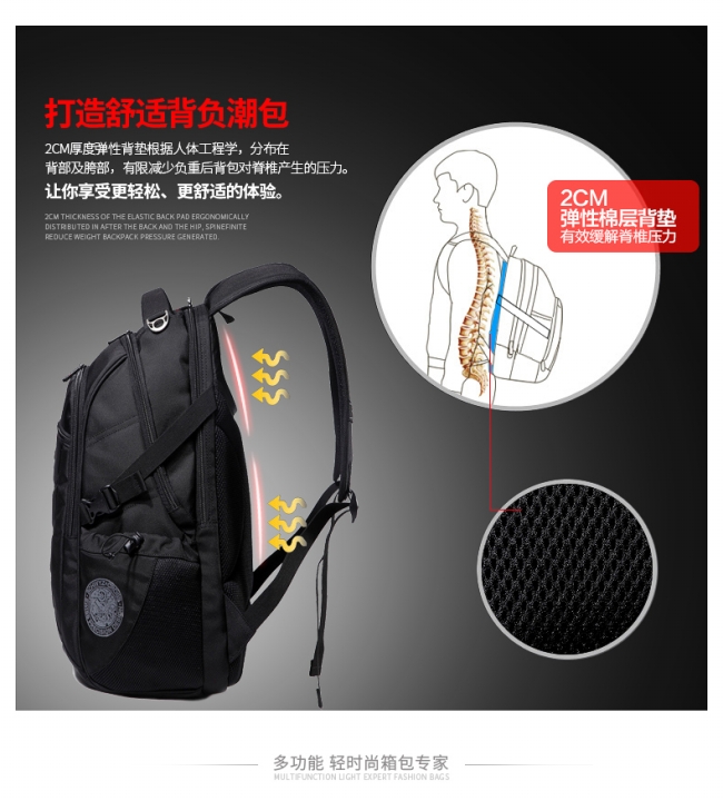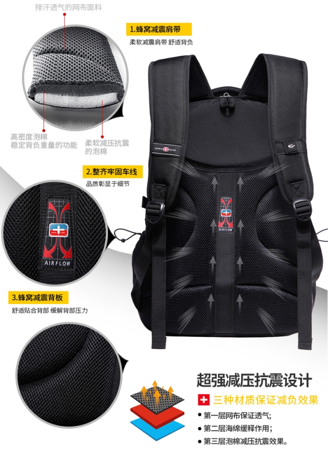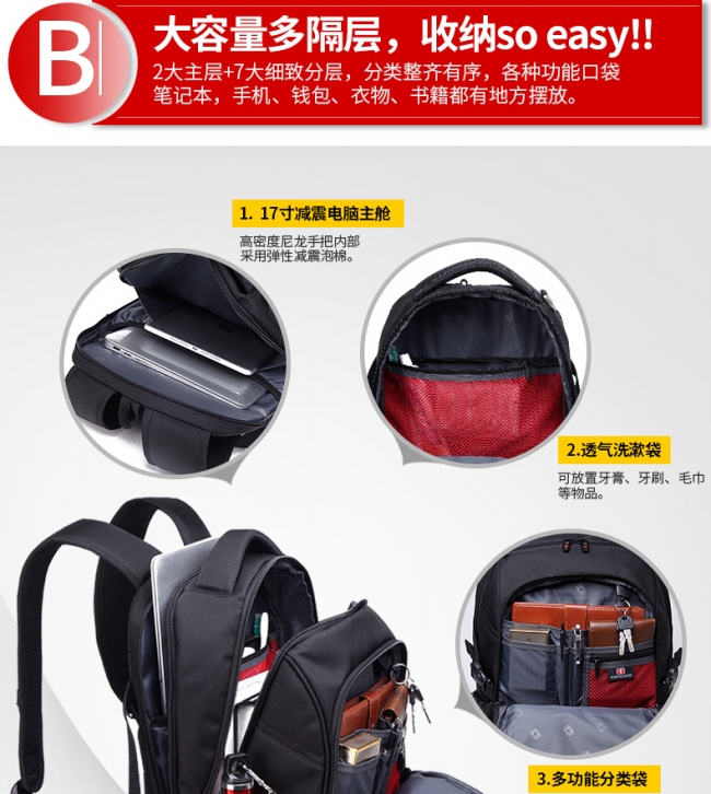 内部结构: 网袋 拉链暗袋 手机袋 证件袋 夹层拉链袋 电脑插袋 相机插袋