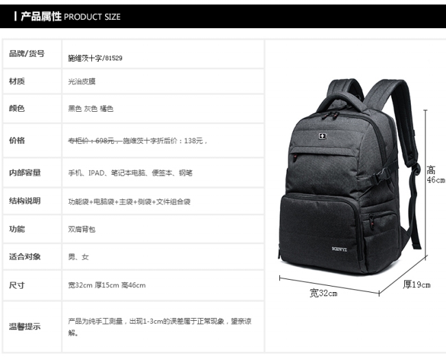 箱包尺寸: 32*19*46cm